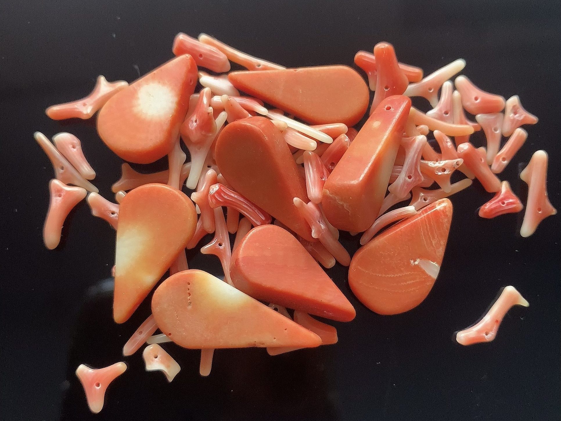 珊瑚は鉱物ではありません。主成分は真珠と同じ炭酸カルシウムでできているため、酸に弱い宝石です。色は白、ピンク、オレンジ、赤、黒五色あります。安物は着色で劣化が早いので要注意です。