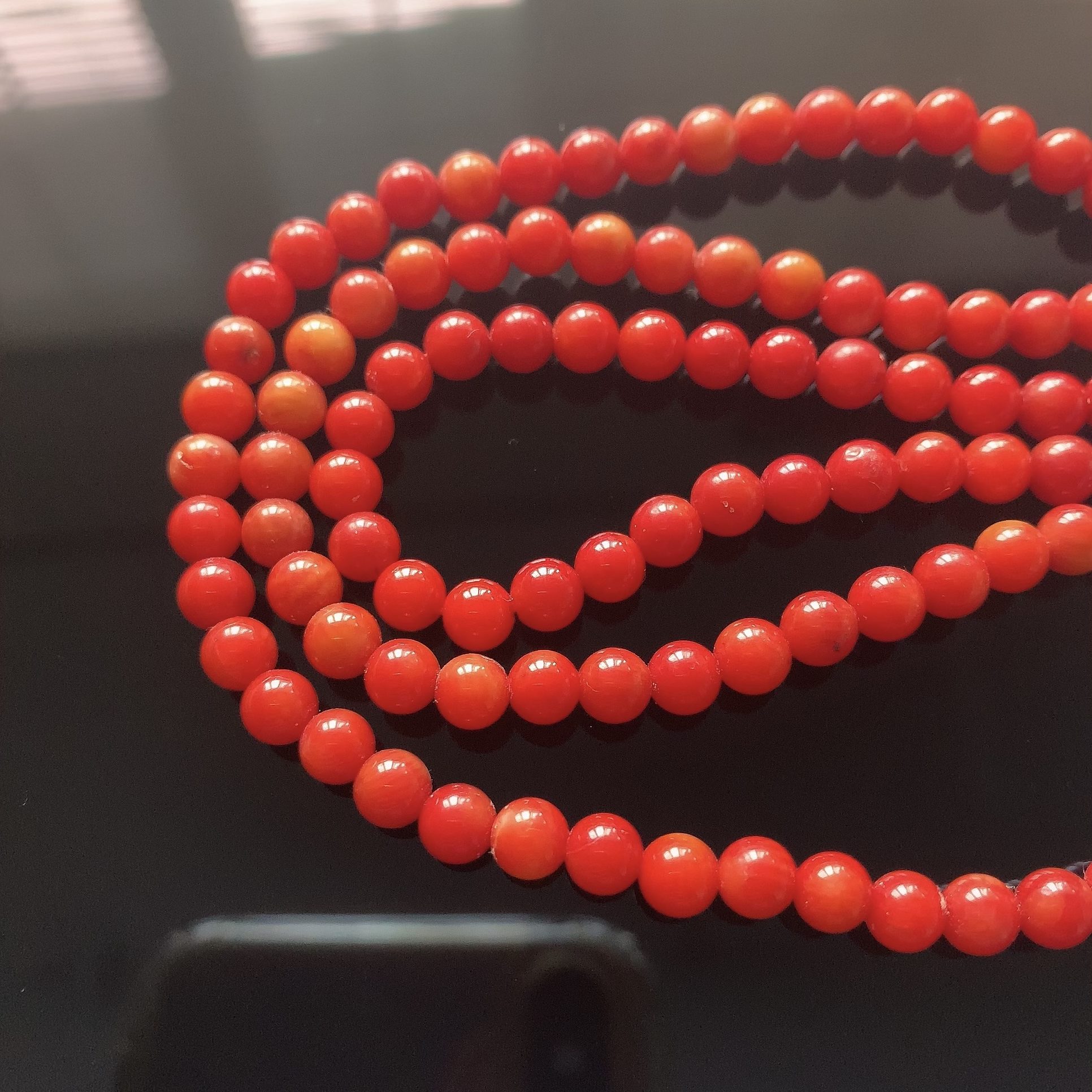 珊瑚は自然のものである、色むらと成長過程において虫食い跡は必ず存在します、普通は虫食い跡を避けてカット真円研磨するのですが、まれにそれがそのまま残っているものがあります。珊瑚は10ミリを超える大きさのものが少なく、それを超えると値段が跳ね上がります。店のピンク色の3ミリの大きさは安く手入れます。
