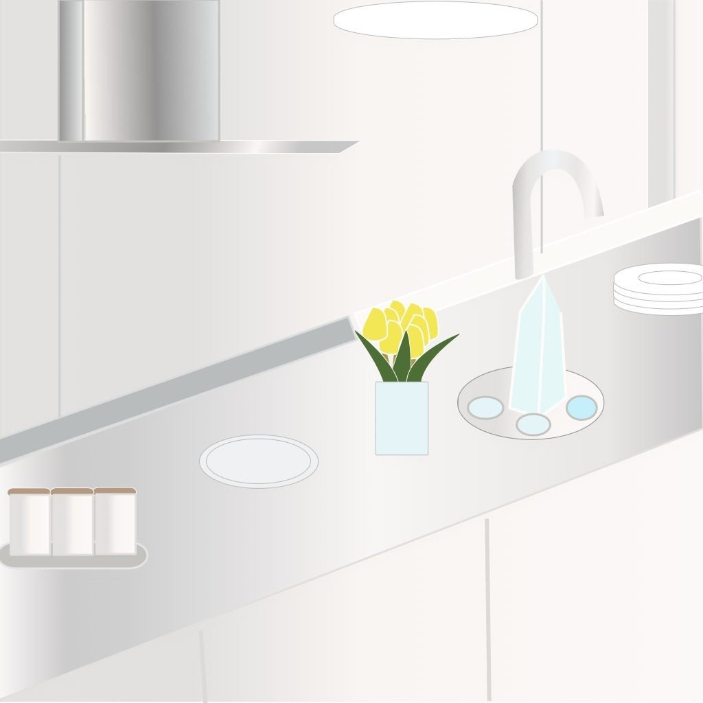 キッチン 「水まわり」にクリスタルをインテリアとして置いて、眺めながら料理をしたら、家事もきっと楽しくなるでしょう。