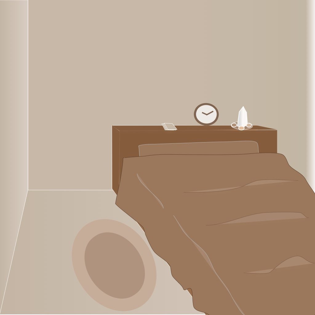 寝室 ベッドの脇の少し斜め、窓の近く、入り口のドアの近くにはクリスタルがいいでしょう。