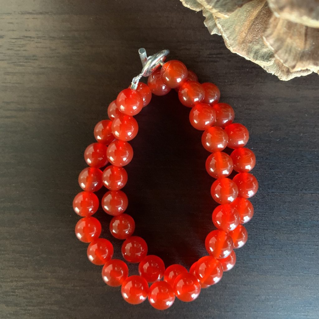 カーネリアンは、酸化鉄による赤オレンジ系の半透明なカルセドニーのことです。